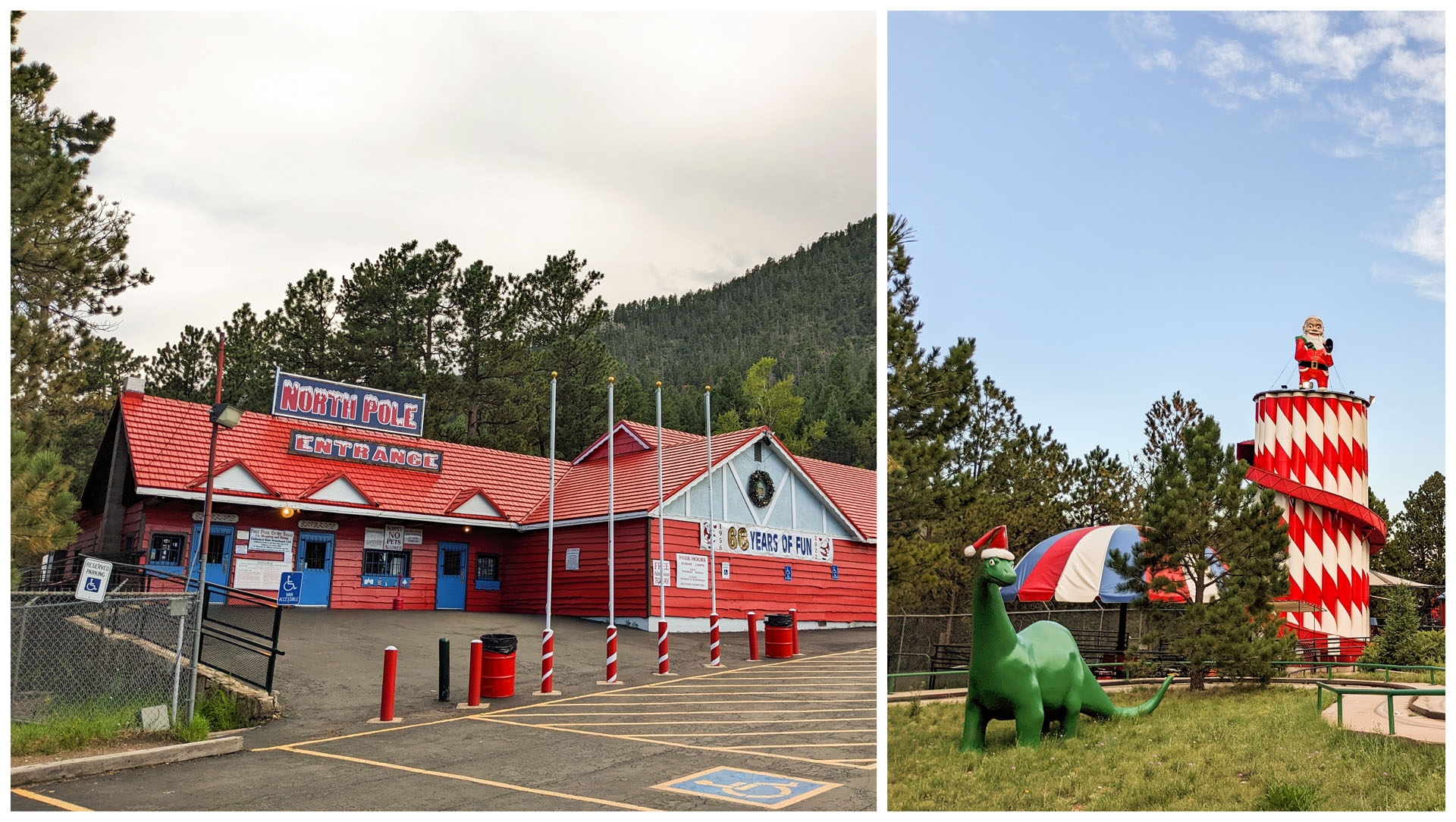 Around 6 p.m. we arrived below the approx. 14.100 ft (4300 m) high Pikes Peak, where the legendary "Race to the Clouds" mountain race takes place every year. And right here is the entrance to the North Pole :-D Even if we can only catch a glimpse of the outside, it's just so typically American.