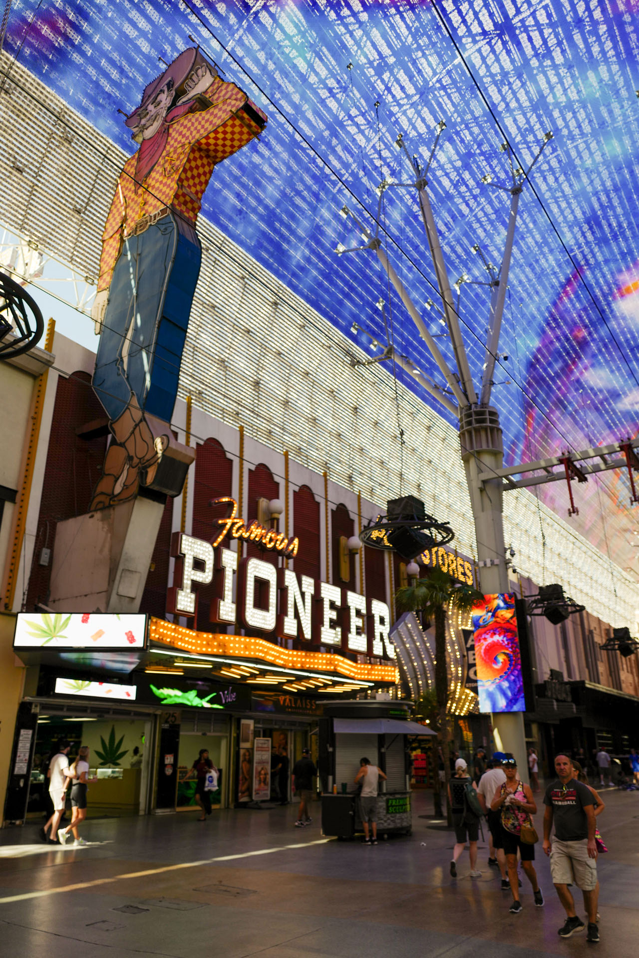 The next morning, we drive to Fremont Street, park at City Hall and have breakfast at the MTO Café, which is apparently no longer open today (08/2024). From there, it takes us less than 10 minutes to reach the world-famous Fremont Street and immerse ourselves in what I think is still the most authentic Las Vegas. Here you can still find incandescent and neon lights and, of course, the completely illuminated roof structure. By the way, if you like old neon lights, I recommend the Neon Museum in the immediate vicinity. Unfortunately, we didn't make it due to time constraints, but from what I've heard so far, it's definitely worth a visit.