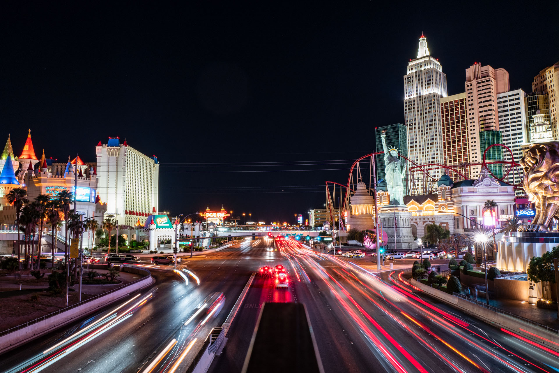 At dusk, we set off to see Las Vegas at night and immerse ourselves in the sea of lights. So we walk south from the Flamingos to the Luxor. In between, we have a bite to eat and just take in Las Vegas at night. We then take an Uber back to our hotel.