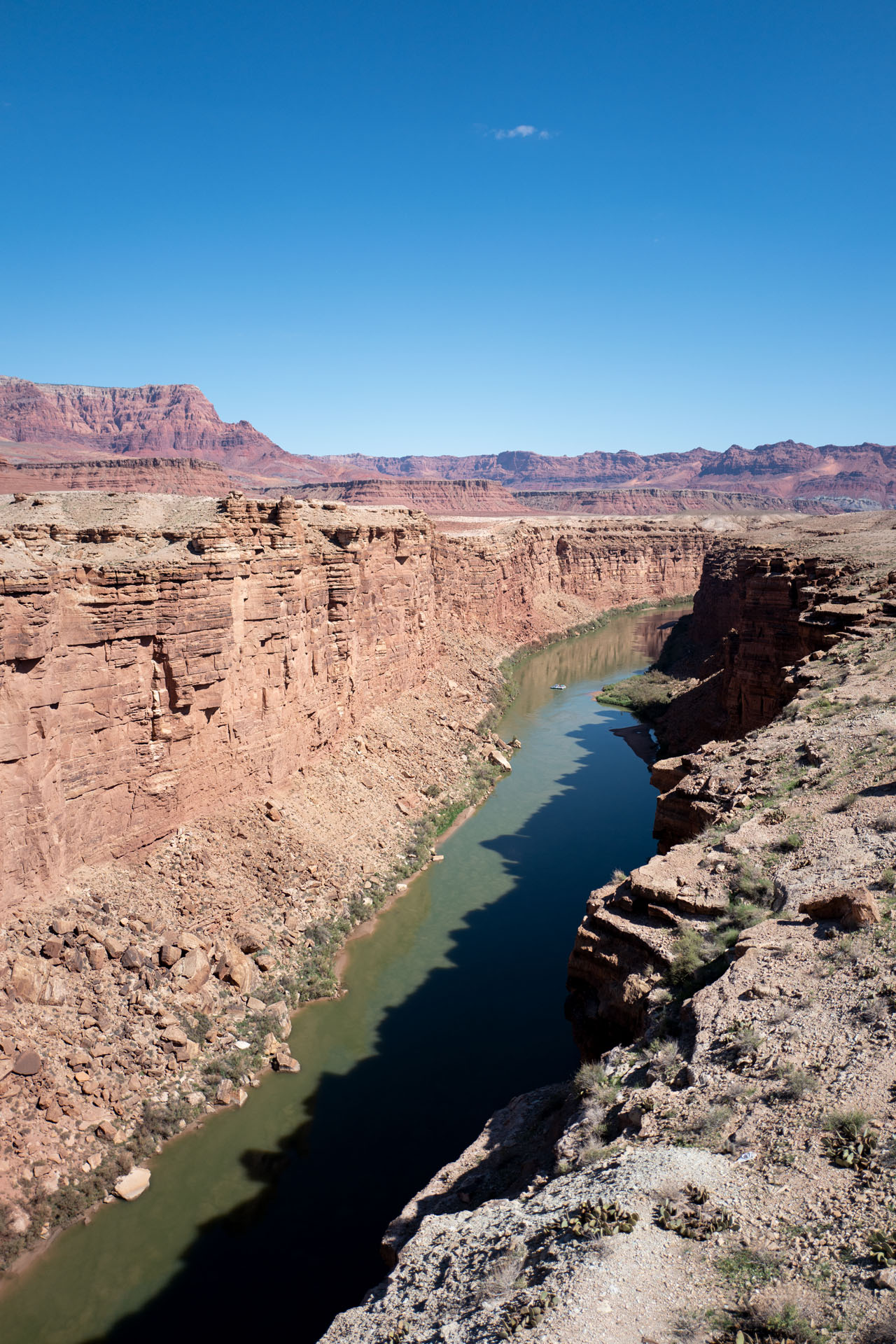 So we start at our first stop, the Navajo Bridge, which leads over Marble Canyon and the Colorado River flowing through it. The bridge was built in 1929 and in 1993 another, wider and more stable bridge in the same style was added. This makes it one of the few ways to cross the Colorado River. For more information, visit the National Park Services (Navajo Bridge).