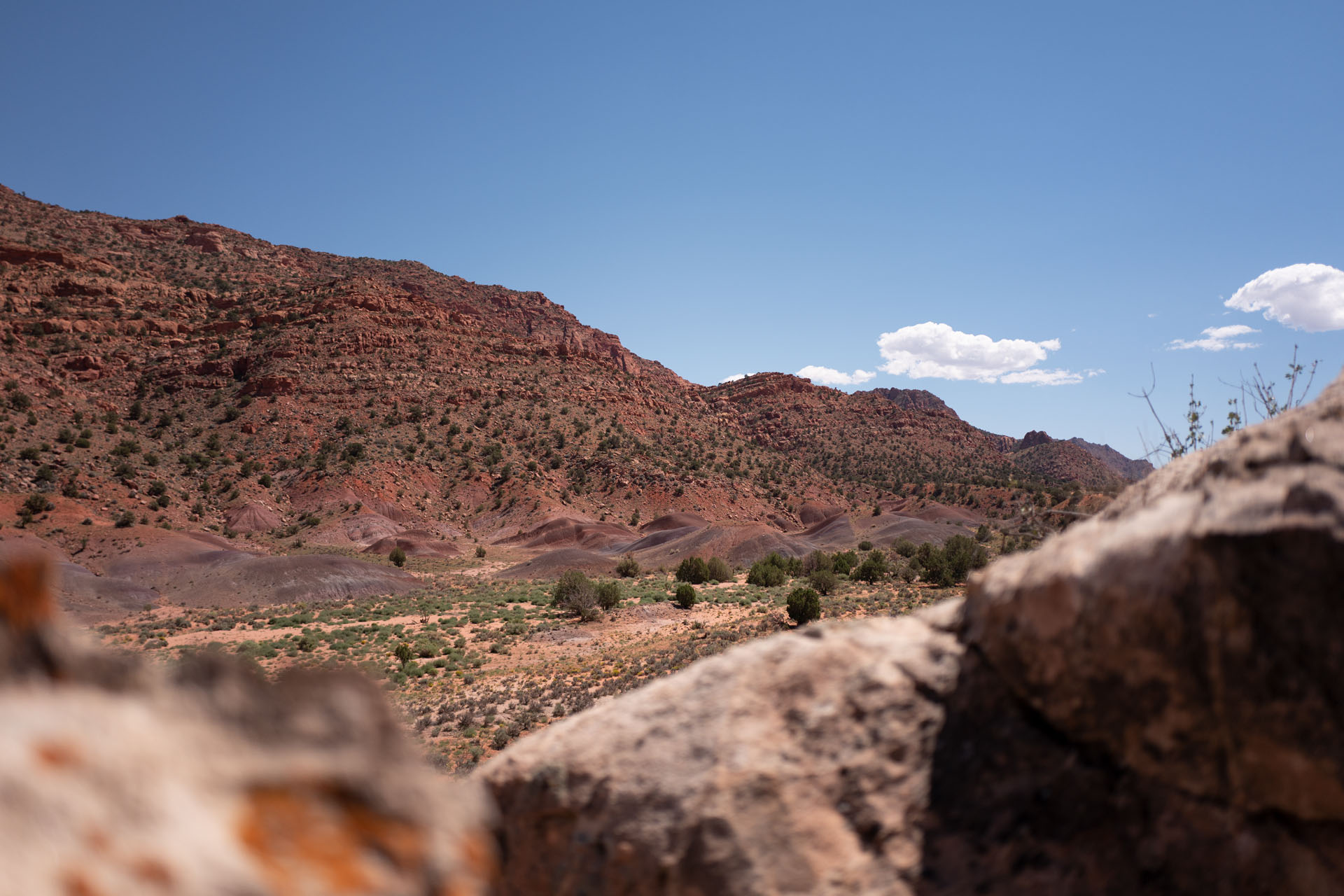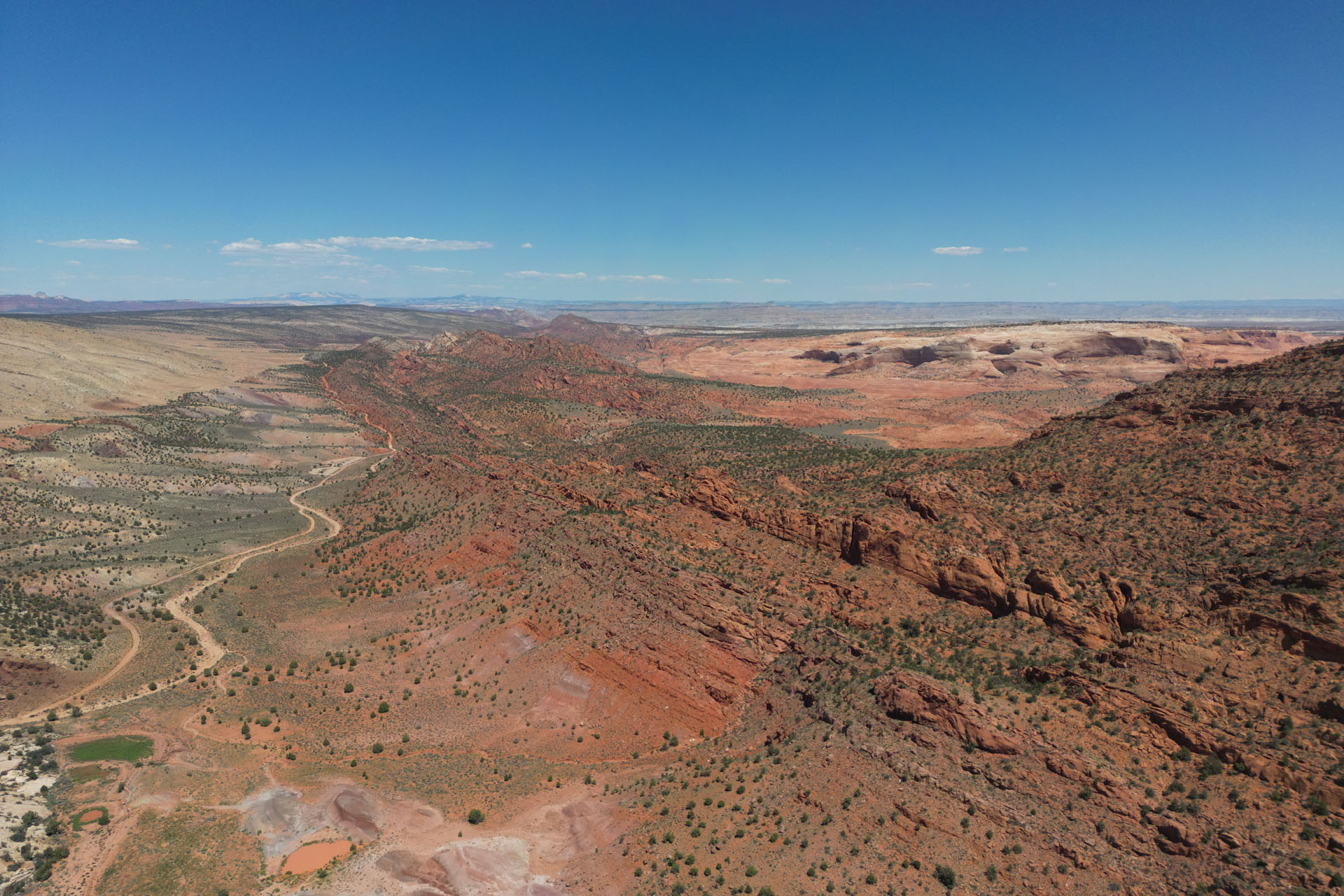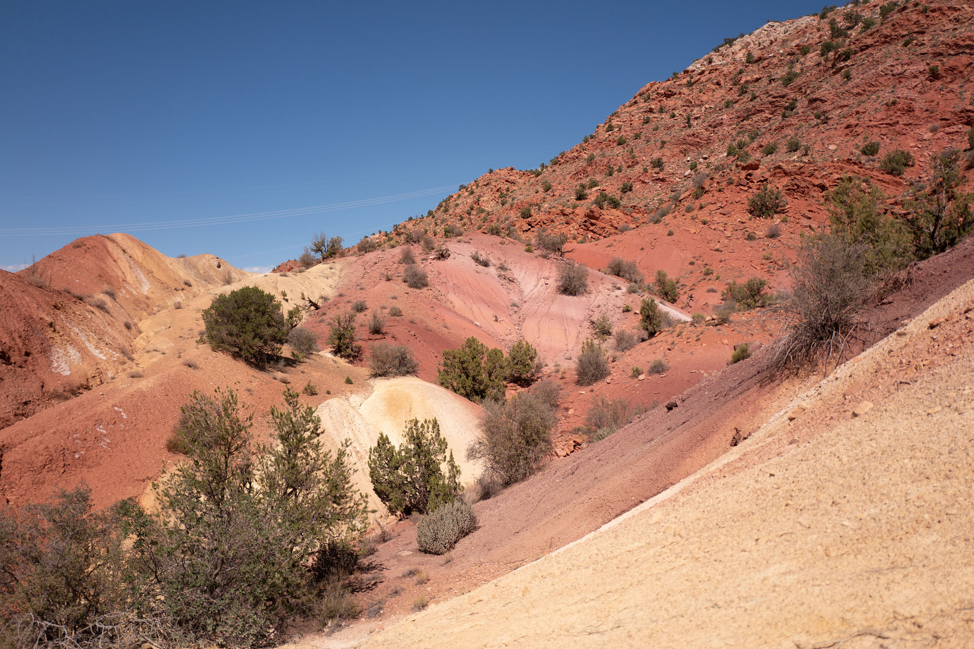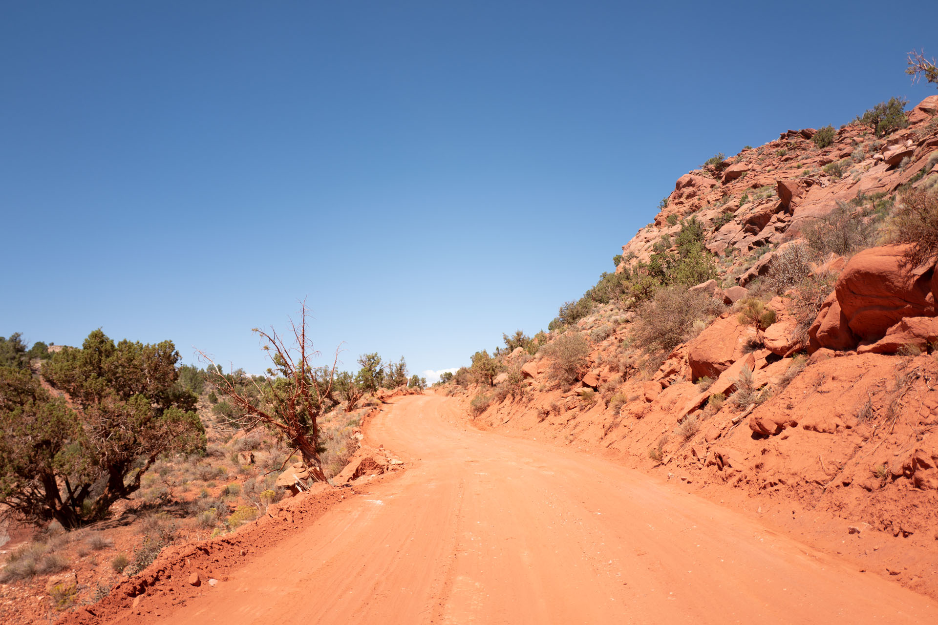 The heat (around 35°C/95°F) doesn't allow for extensive hikes today either. That's why we always stop for a moment and look around in the immediate vicinity of the car. The landscape is once again unique and deserted. By the way, we also reach the next state on our trip - Arizona. A few kilometers before we should reach asphalt again, the track gets exciting again. It must have rained heavily a few days earlier and the road was partially flooded. Fortunately, hard-working helpers were already clearing them out and we didn't have to turn back.