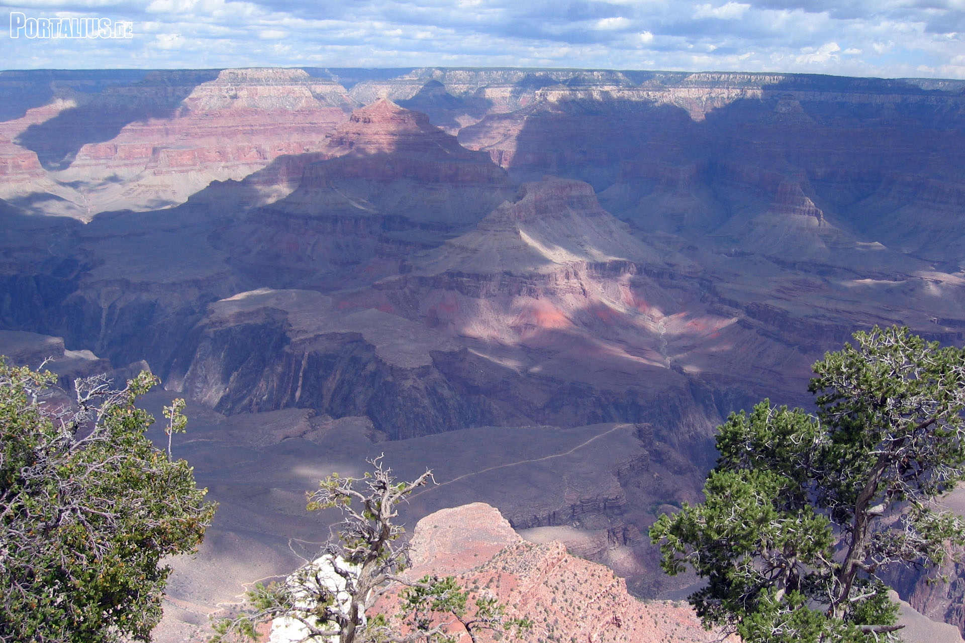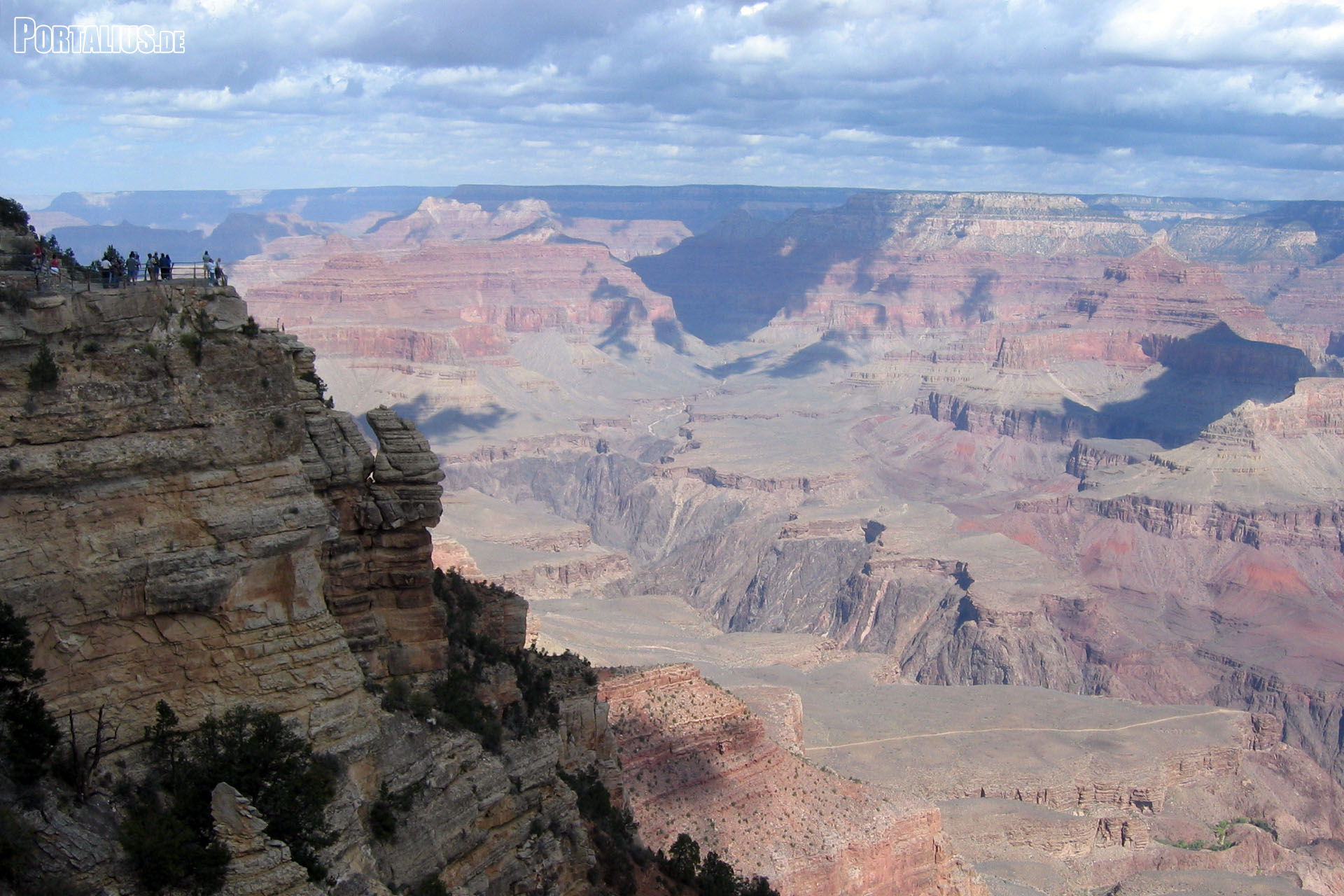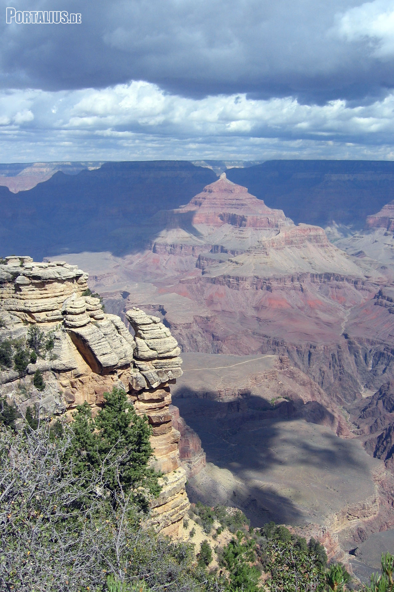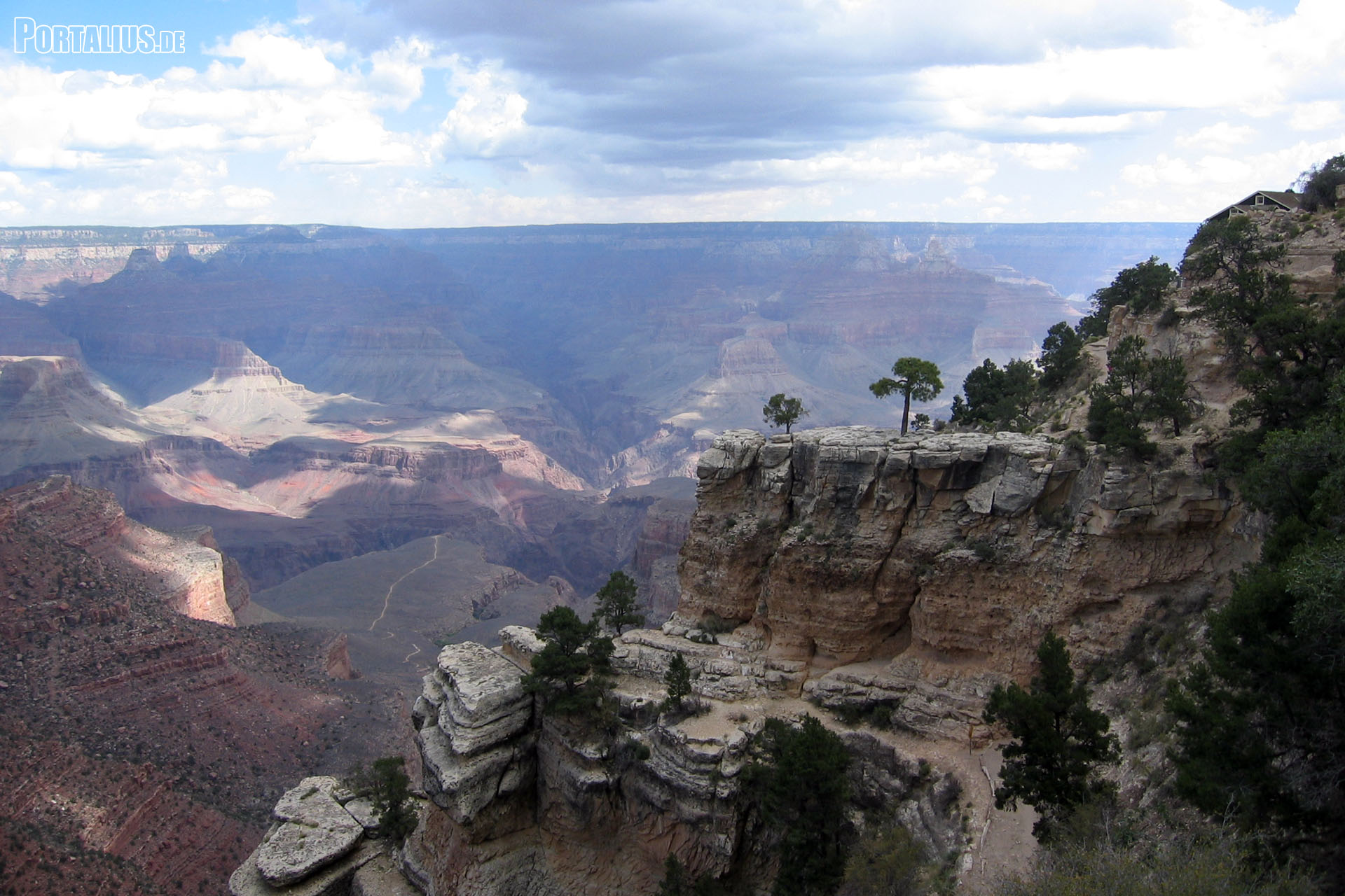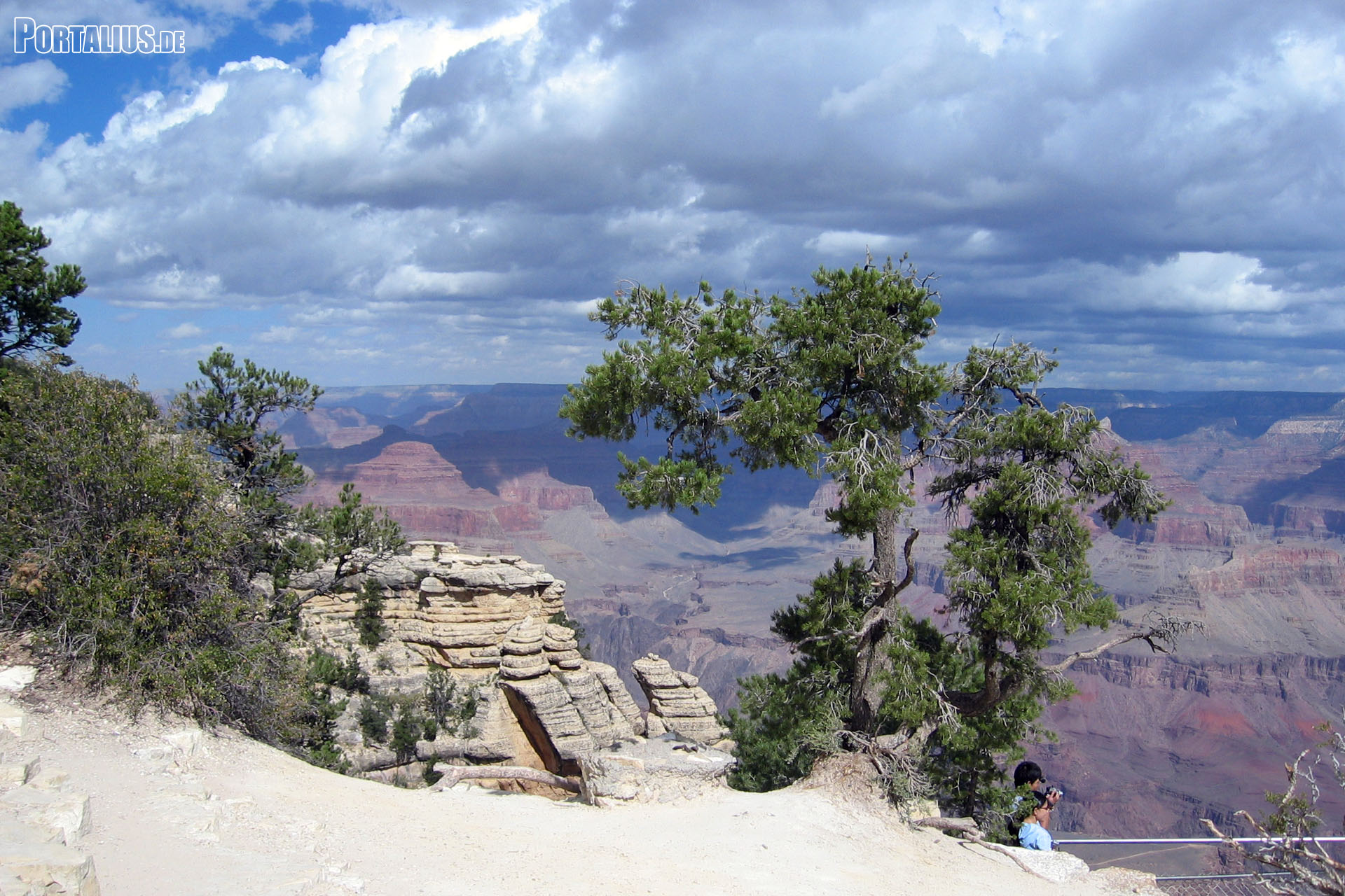 Wir beide haben uns den Grand Canyon Nationalpark etwas anders vorgestellt. Wider unserer Erwartung gibt’s sehr viel grün. So richtig kann man sich bis zum letzten Zeitpunkt vor dem Canyon nicht vorstellen, dass hier auf einmal nichts mehr außer viel viel Stein sein soll. Umso erstaunter sind wir, als wir den Canyon dann letztendlich sehen. Ein umwerfender Ausblick bietet sich uns. Wir sind uns beide einig: Man kann sich dieses Wunder der Natur nur vorstellen, wenn man es live sieht. Wir nutzen so viele Aussichtspunkte wie möglich, ich habe bei einigen Punkten doch sehr mit meiner Höhenangst zu kämpfen- die sehr starken Böen tun ihren Teil noch hinzu. Ein wenig Pech haben wir mit dem Wetter. So sind einige Wolken am Himmel, was die Sicht und auch die Ausleuchtung von vielen Stellen im Canyon verschlechtert. Auf unserem Weg raus aus dem Canyon fängt es an zu regnen.