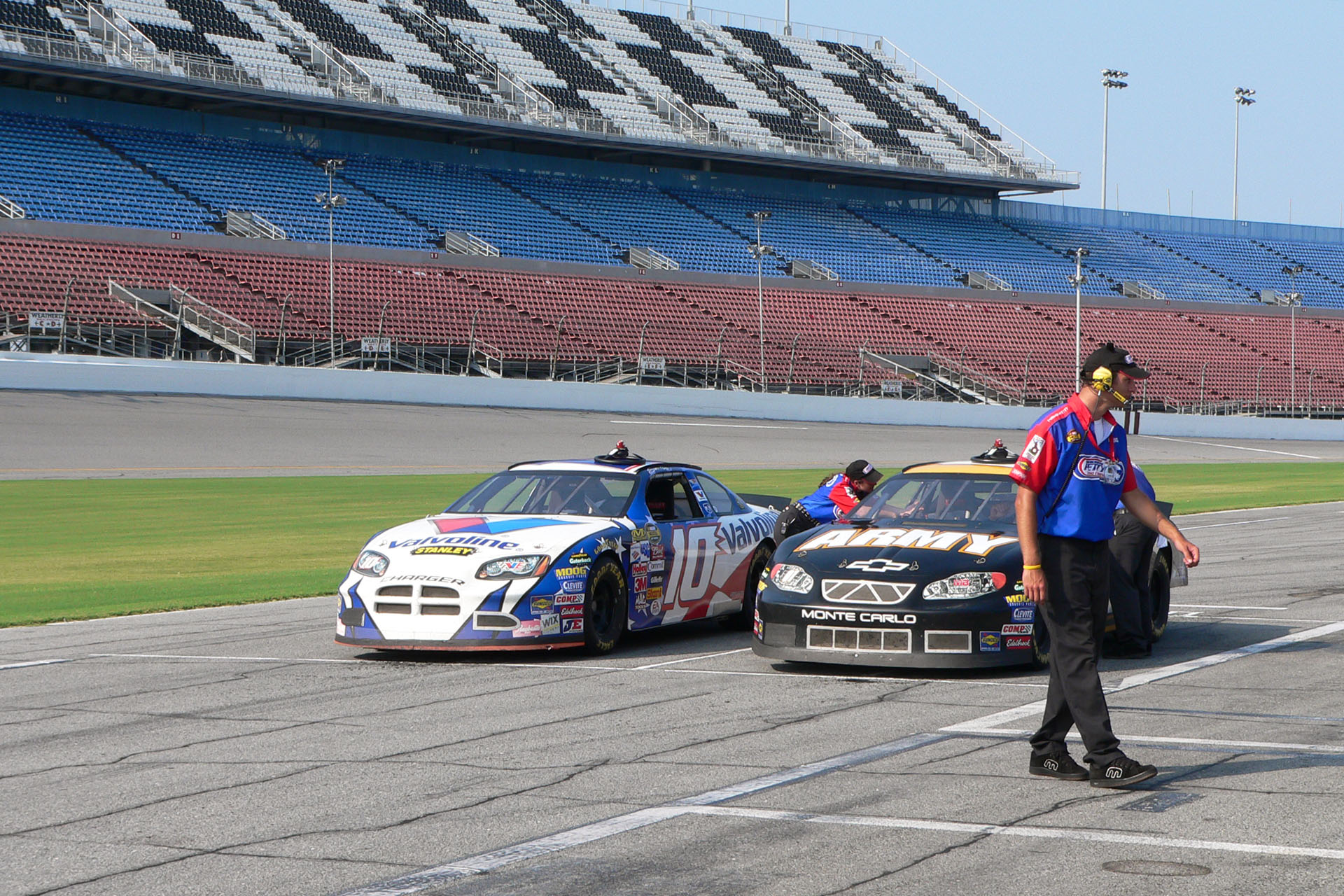 Vinzent und René gönnen sich noch ein besonderes Highlight. Für 150 USD drehen sie als Beifahren ein drei Runden in einem NASCAR. Somit haben wir auch das Vergnügen, das V8-Donnern der Rennwagen zu hören und zu spüren, da wir direkt an der Boxenmauer sind. Heute (2025) beginnt der Spaß bei 230 USD.