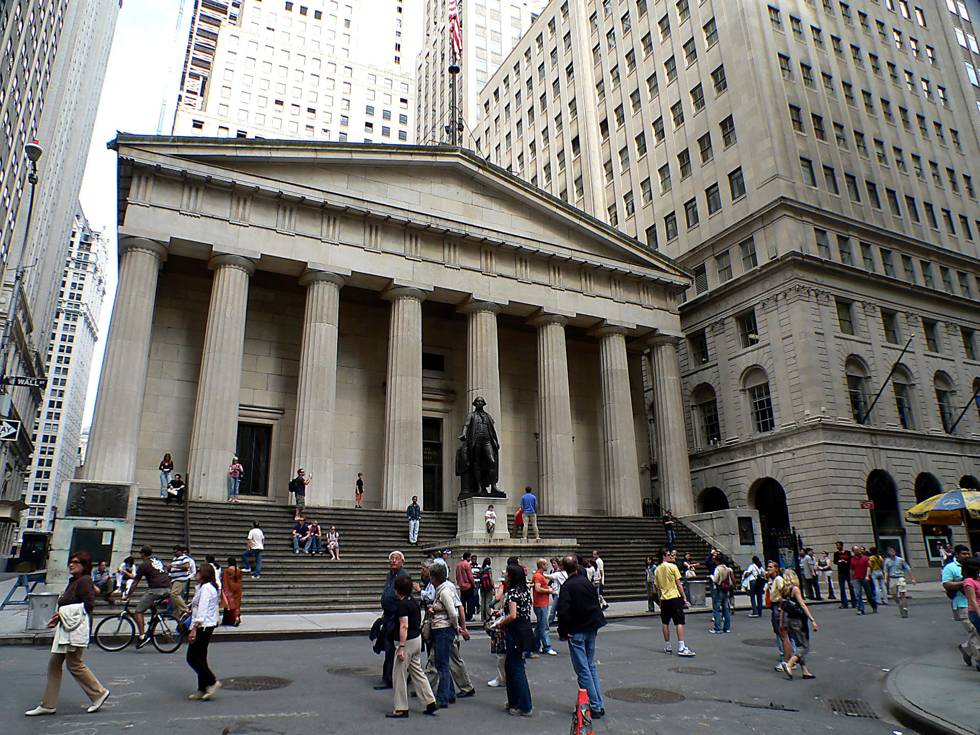 Wieder in Manhattan angekommen geht´s nun über die Pearl Street zur Börse und der Wall Street. Dabei läuft man durch die Häuserschluchten des Finacial Districts. Wir laufen dann die Wall Street in Richtung Broadway entlang und treffen genau auf die Trinity Church.