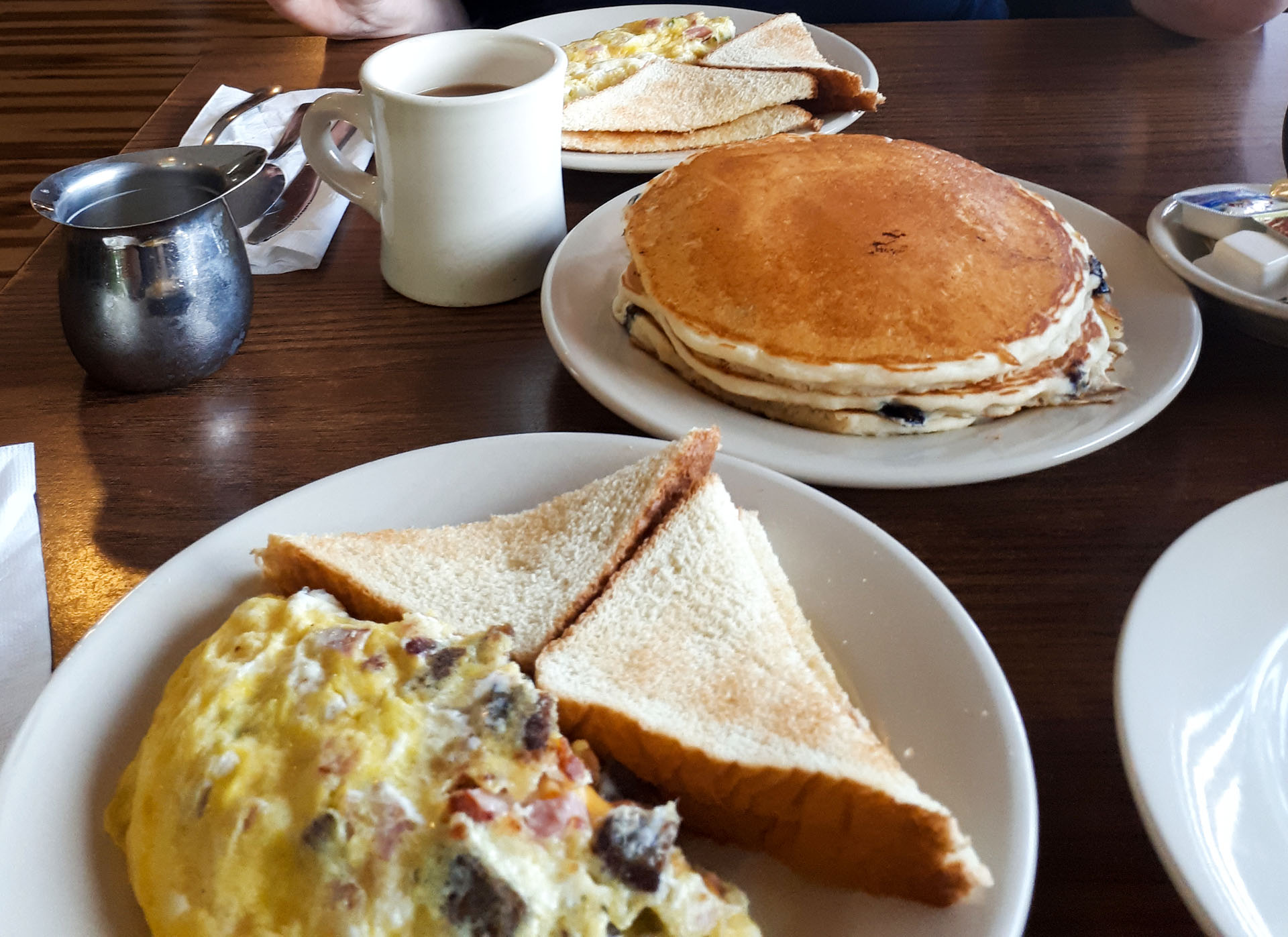 Neuer Morgen neues Diner. Die Sonne lacht wieder und ich habe uns ein nettes abgelegenes Diner rausgesucht. Wir fahren ca. eine Stunde vom Hotel bis dorthin und erfreuen uns an der schönen bewaldeten Landschaft. Das Diner ist dann genau wieder das was ich auf so einem Roadtrip sehen will. Es ist einfach perfekt nicht perfekt. Hier treffen sich die Einheimischen um beim Essen die Nachbarn zu treffen du etwas miteinander zu quatschen.