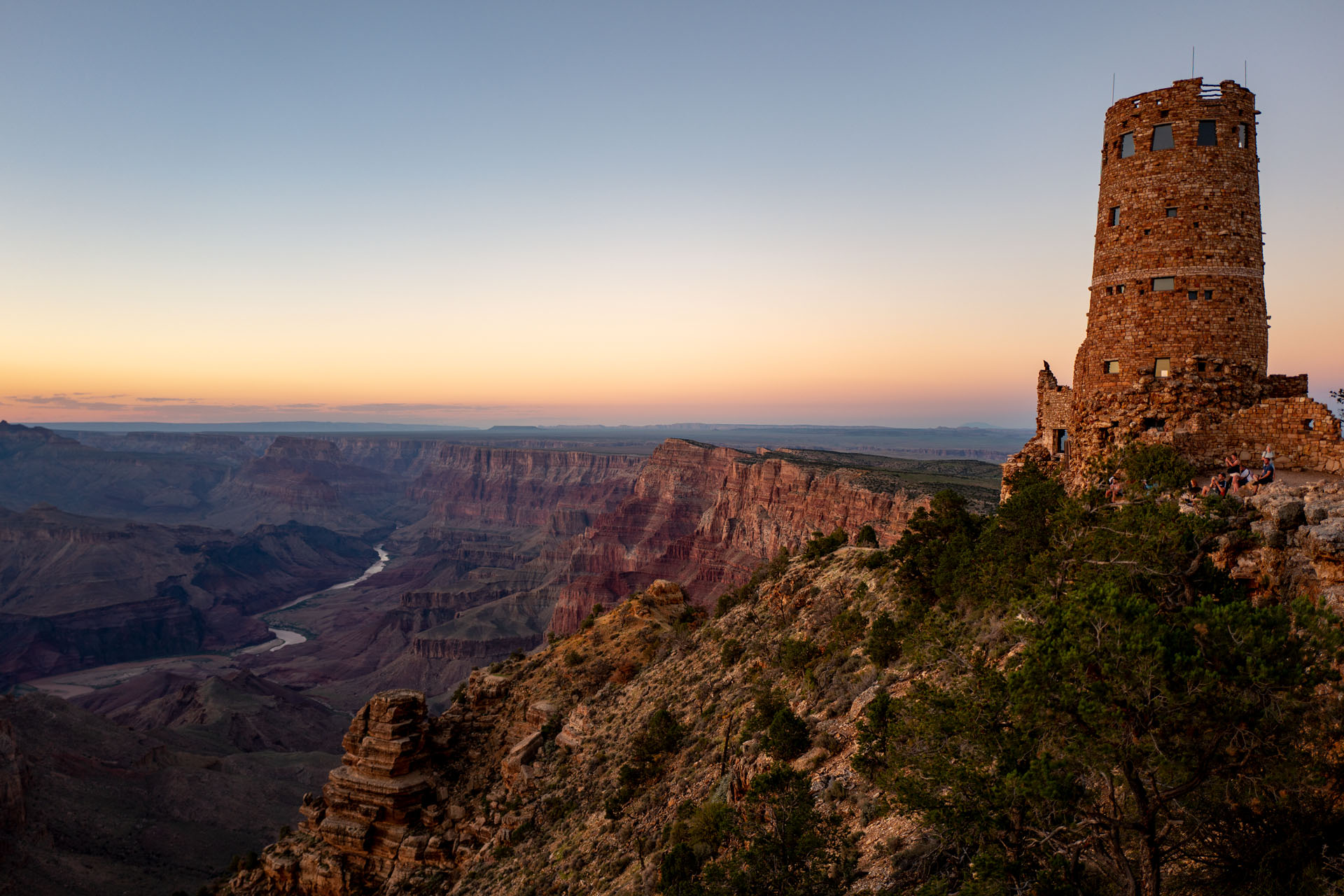 Zum Abschluss fahren wir dann die I65 in Richtung Westen und schaffen es punktgenau zum Sonnenuntergang am Desert View Watchtower. Hier haben sich bereits viele Menschen versammelt um den Moment zu genieße oder eben nur aufzunehmen ^^