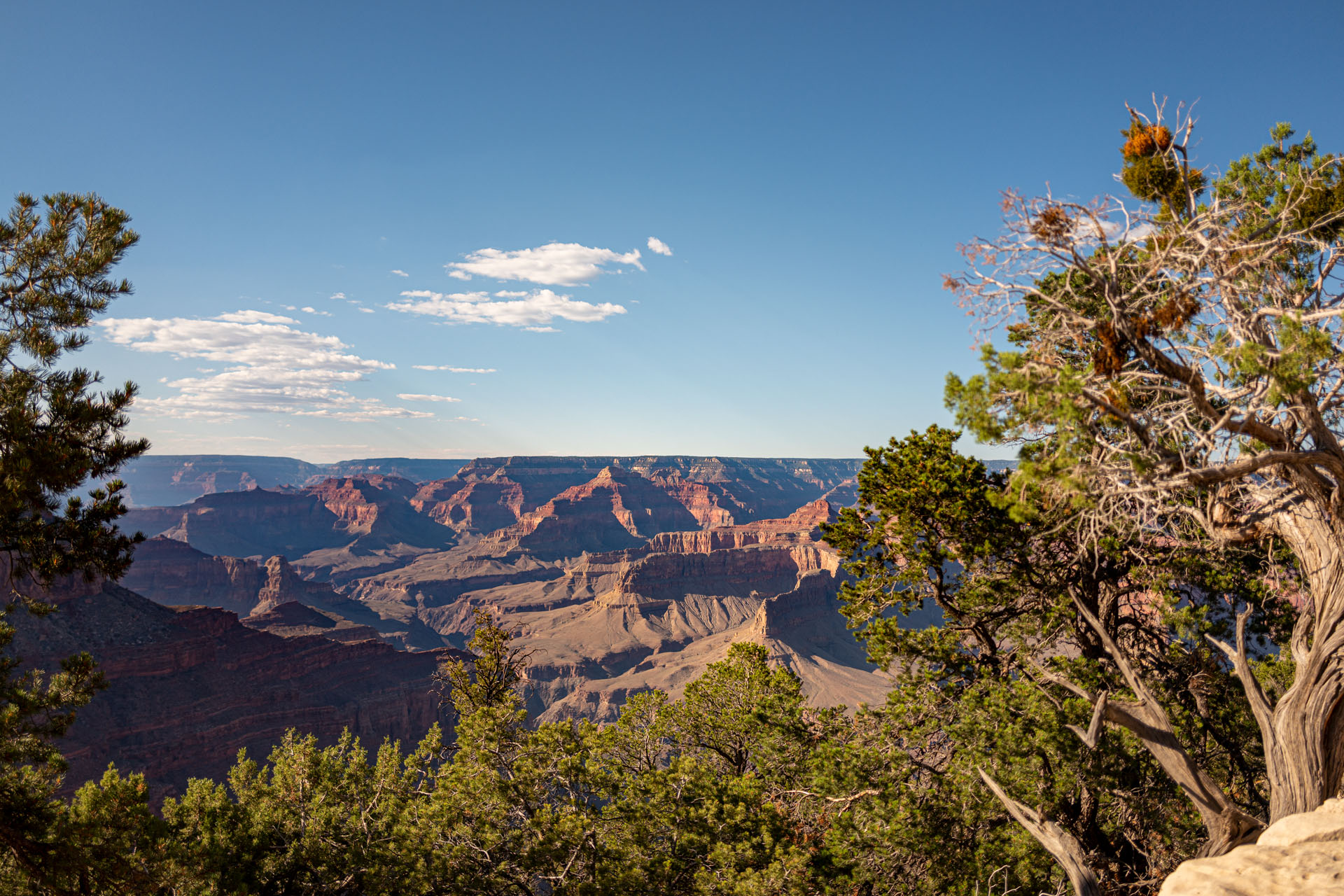 Es ist einfach fantastisch, wie die Sonne und Schatten der Wolken den Canyon immer wieder erscheinen lassen, ganz abhängig von der Tageszeit. Alle paar Meter ergibt sich ein neuer faszinierender Blick auf die Gesteinsschichten und -formen.