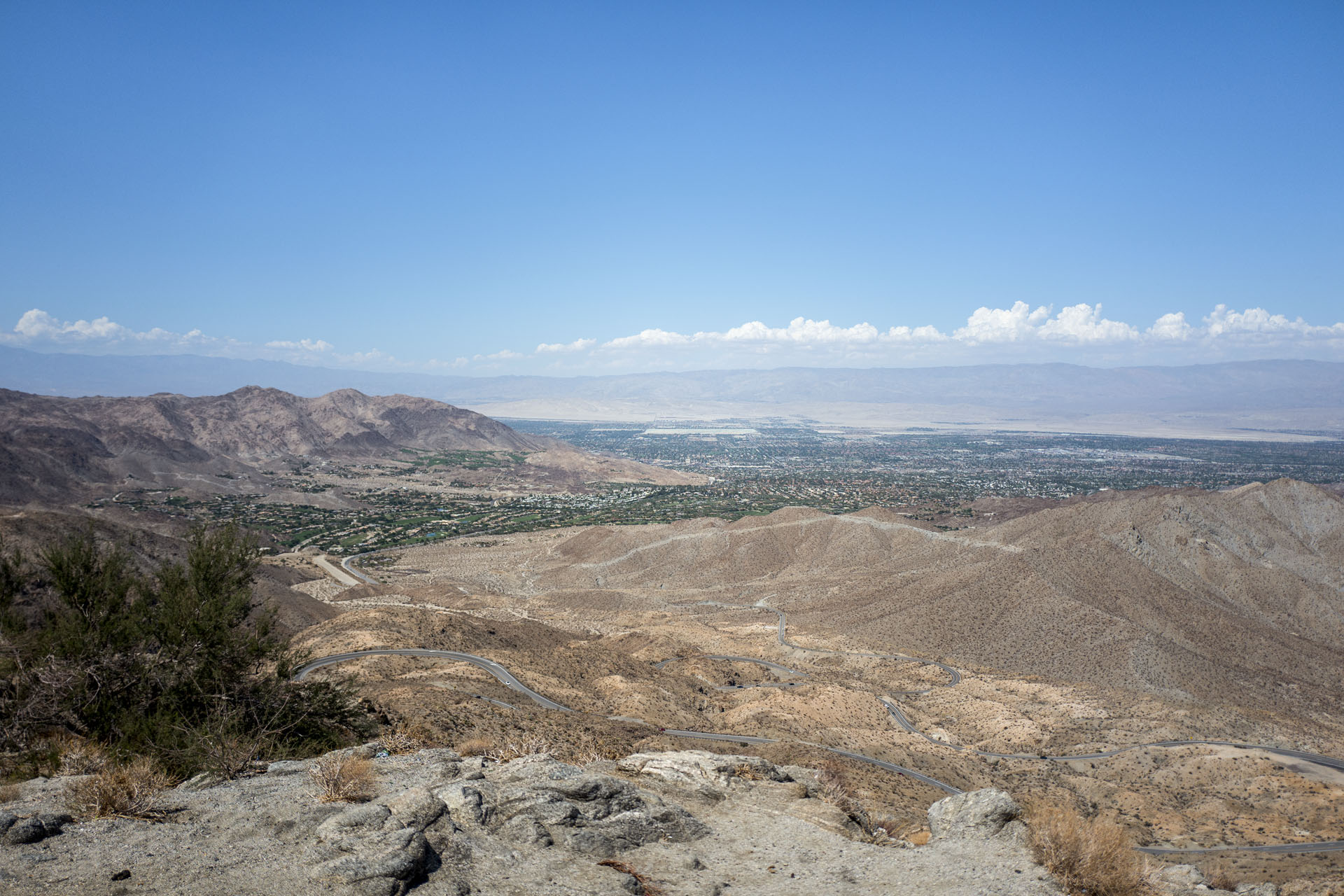 Danach geht es weiter in Richtung Palm Springs und damit sagen wir dem Pazifik für die nächsten 3 Wochen good bye. Der Weg dorthin führt uns über Pala Mesa, Temecula, Aguanga, Anza und Palm Desert. Während an der Küste mit 28°C noch ganz angenehm ist, steigt das Thermometer auf der anderen Seite der Bergkette auf über 40°. Die Berge sind nur karg mit Büschen bewachsen, die Straßen teilweise schmal und kurvenreich.