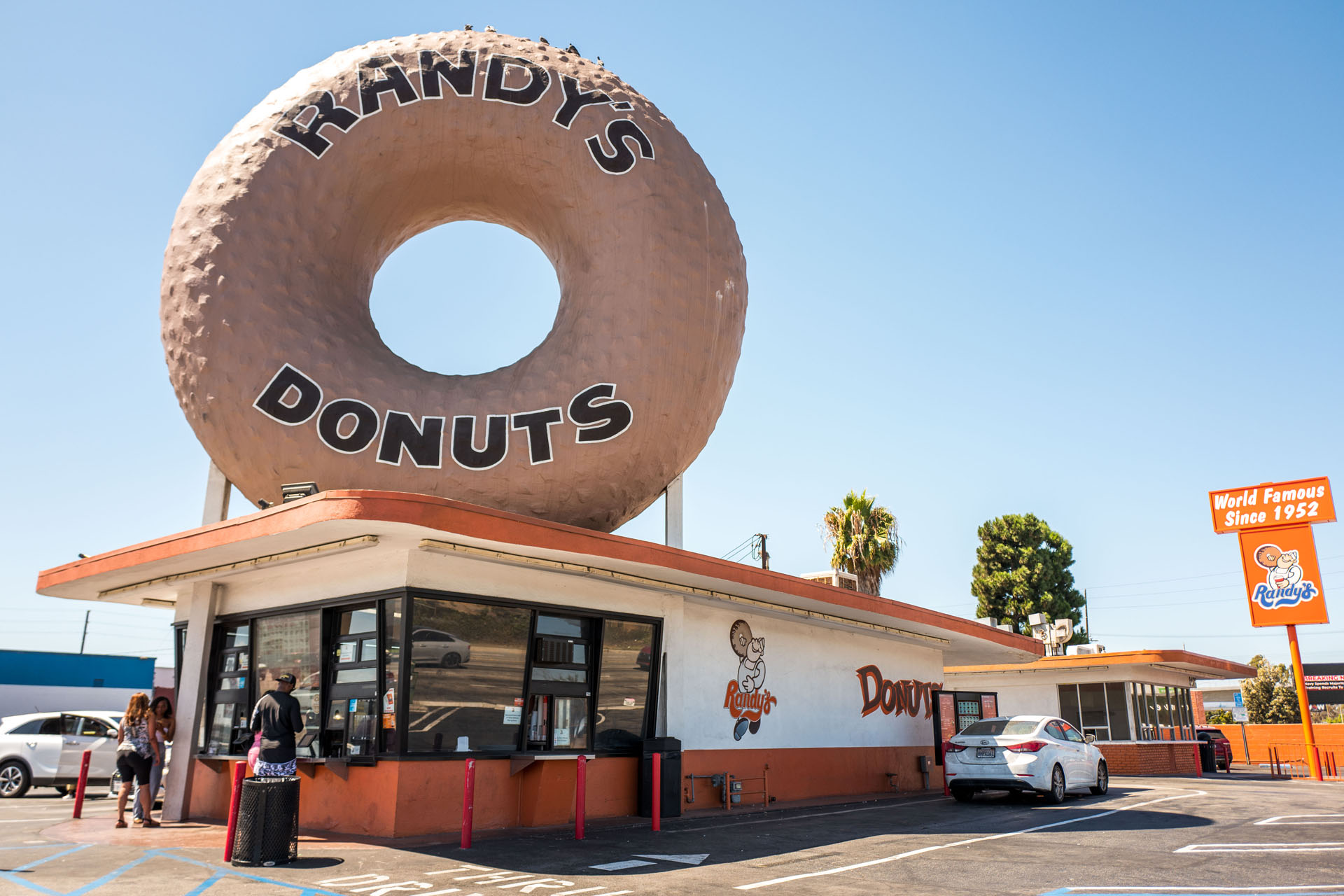 Da ursprünglich der Flieger erst gegen 16:15 Uhr in Los Angeles sein sollte, habe wir für den Tag nicht wirklich noch etwas geplant und nur ein Hotel in Huntigton Beach gebucht um dann am nächsten Tag nicht mehr durch LA fahren zu müssen. Da wir nun aber etwas früher da sind und Kaffeezeit ist, fahren wir natürlich zu Randy´s Donuts. Typisch amerikanisch, hauen wir uns die Donuts und den Kaffee direkt auf dem Parkplatz im Auto rein.